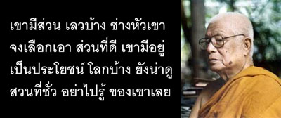 โลกทุกวันนี้มันวุ่นวาย จะหาใครดีไปทั้งหมดคงไม่ได้ จงเลือกเอาส่วนดีที่เขามีอยู่ก็พอ